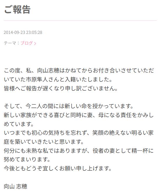 市原隼人の妻・向山志穂のプロフィールと経歴