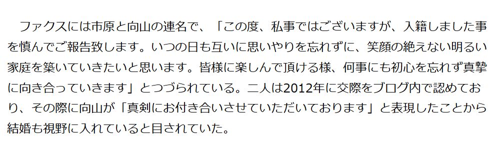 | 事務所・本人のコメント | 現在までに大きな発表なし |